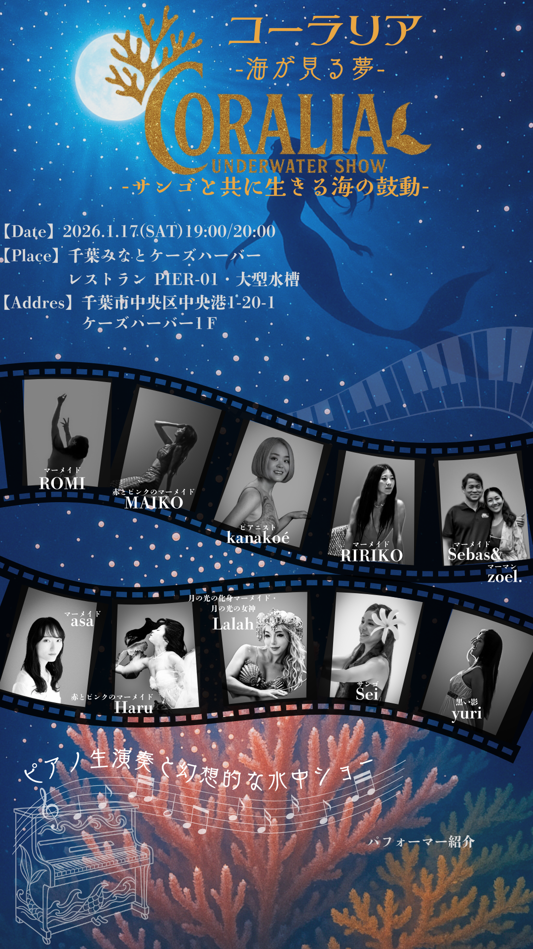 - 内容:サンゴ学習+水中ダンス&マーメイドショー