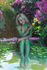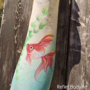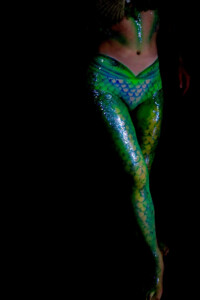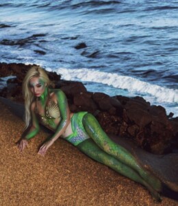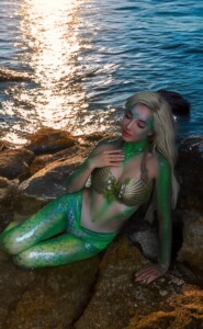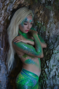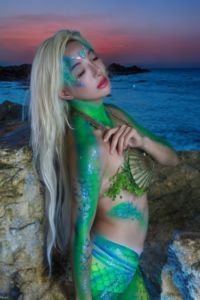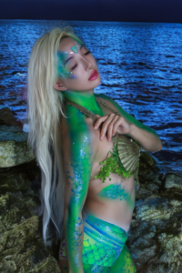 しかし、リアルな人魚を追求すると、水の中で輝く肌質感、魚と人間のグラデーションなど表現が難しいです。プロのボディアートを適用することで本物の人魚を演出することが可能です。