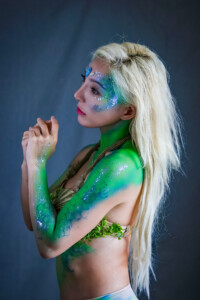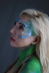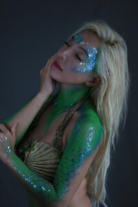 また、多くのマーメイド愛好者は、自分の理想とするマーメイドの人格(=Mersona)を考え、それに合わせた活動名や衣装を決めています。この個性を具体化する手段のひとつがボディアートです。メイクやペイントを活用することで、自分だけのオリジナルマーメイドを表現し、撮影の完成度を高めることができます。