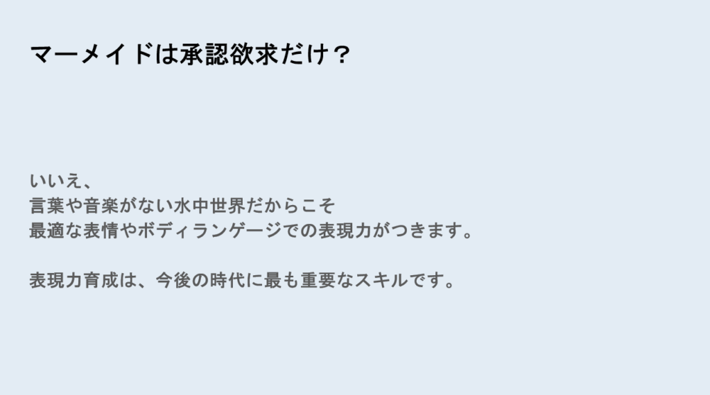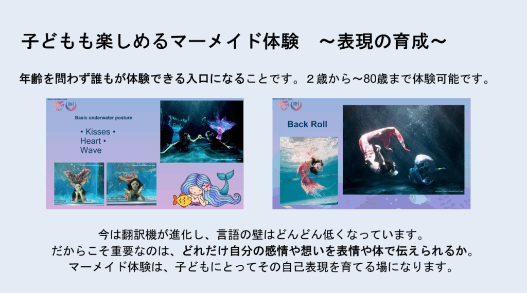 マーメイド体験は、子どもにとってその自己表現を育てる場になります。
