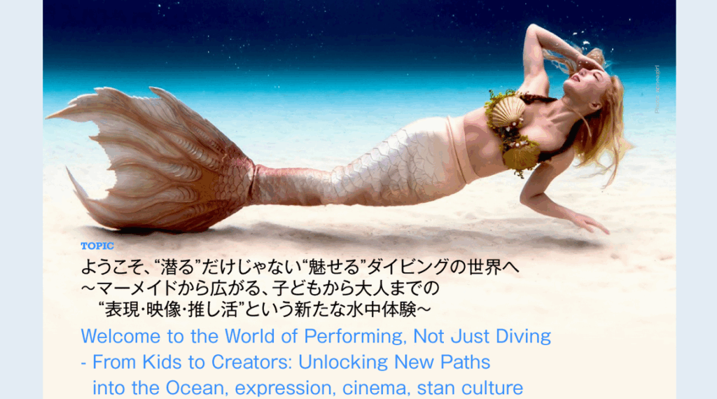 ADEJ ADEXJAPAN 2025 マーメイドLALAH 講演内容 解説「ようこそ、“潜る”だけじゃない“魅せる”ダイビングの世界へ」〜マーメイドから広がる、子どもから大人までの“表現・映像・推し活”という新たな水中体験〜