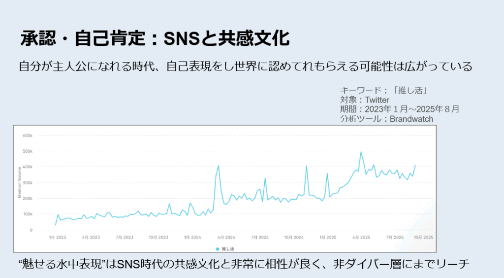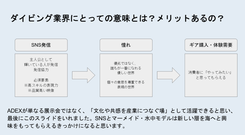 つまり、“魅せる水中表現”はSNS時代の共感文化と非常に相性が良く、非ダイバー層にまでリーチできるのです。