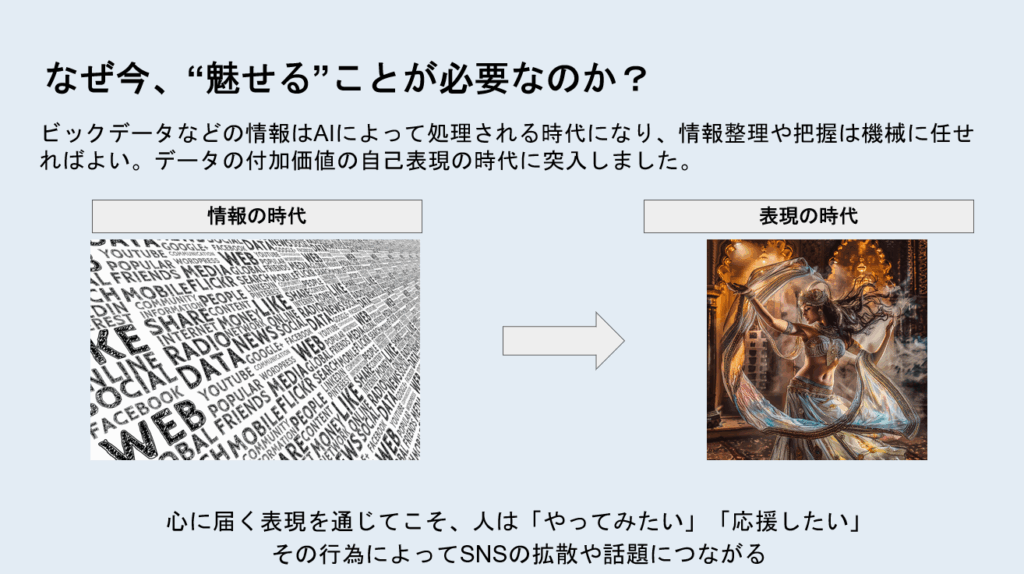 つまり現代は「情報の時代」から「表現の時代」へ移り変わっています。