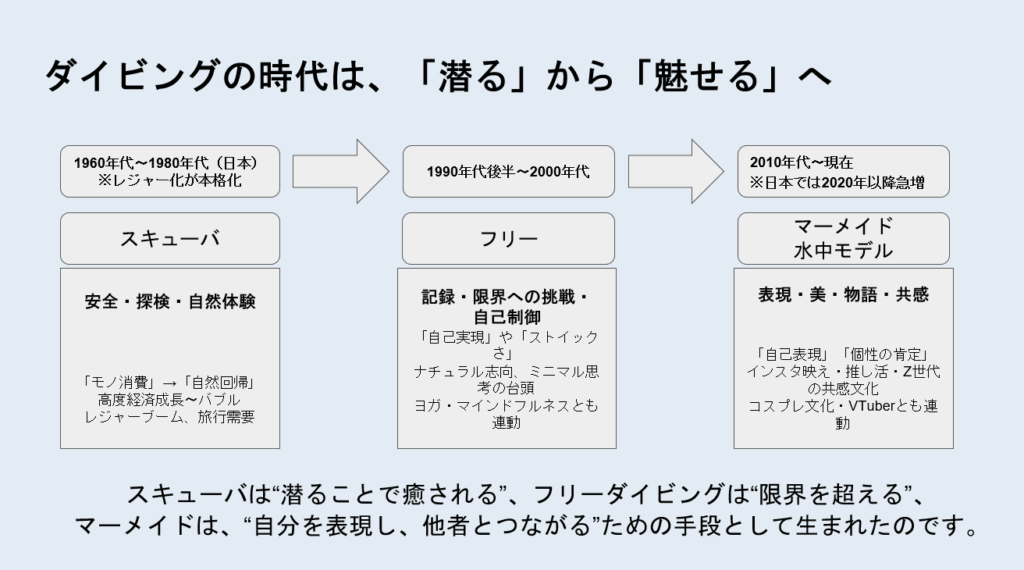 ◉ フリーダイビングは「己との戦い」や「静寂」に価値を見出した時代