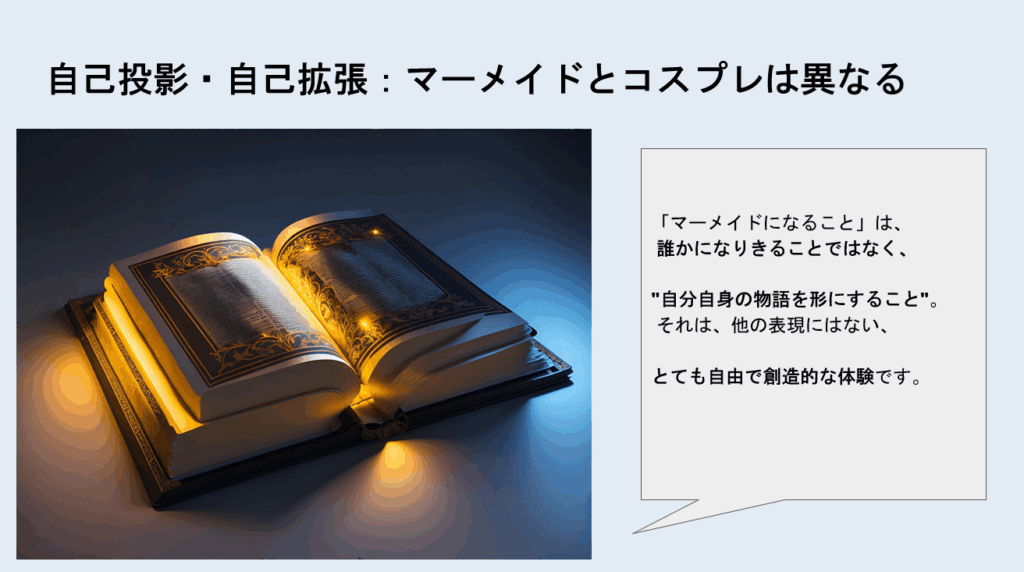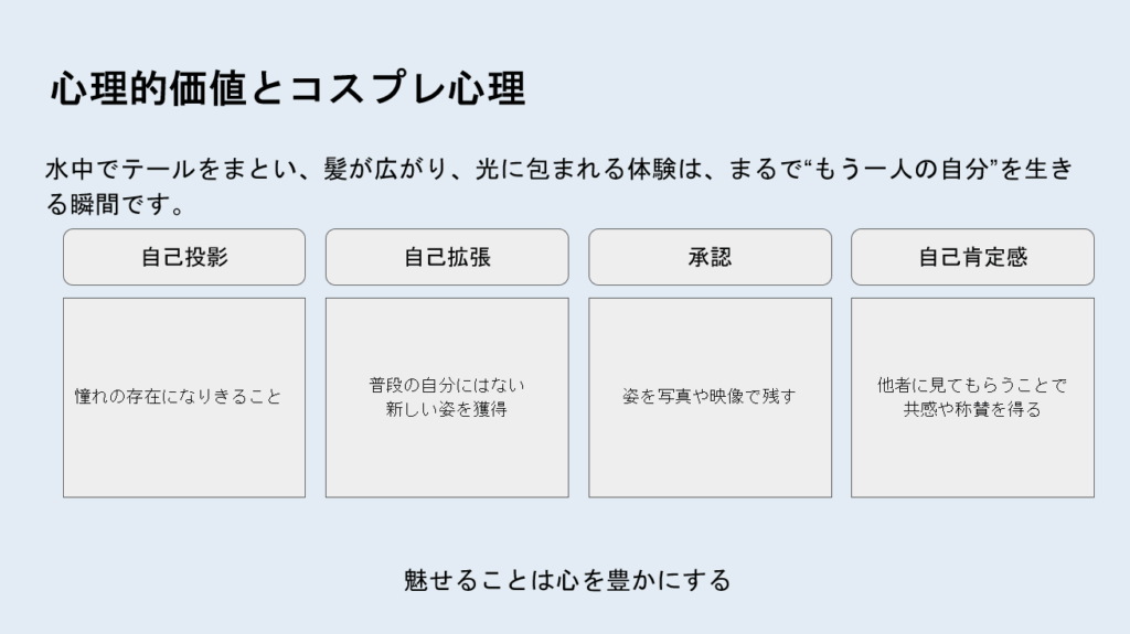 心理学的に見ると、マーメイドになる体験は「コスプレ」に似ています。