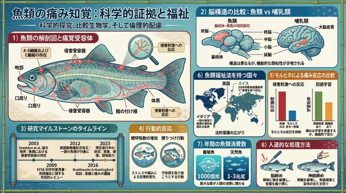 - 意識的な選択:活き造りや踊り食いを避け、人道的に処理された魚を選ぶ